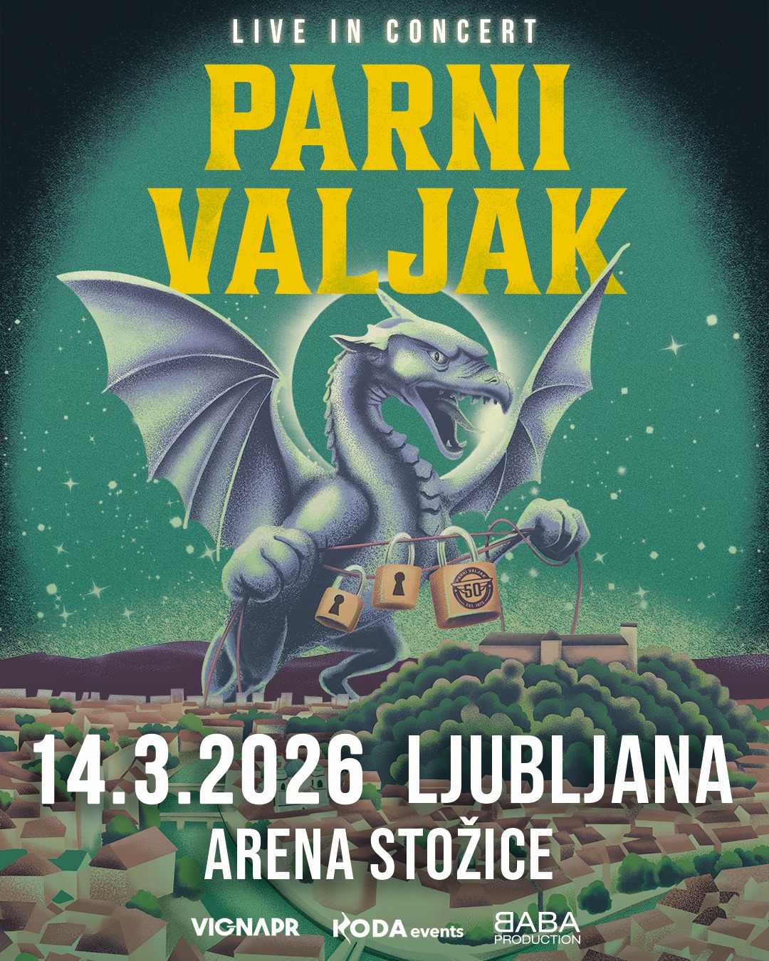 Jedan od najznačajnijih bendova s ovih prostora, Parni Valjak, donosi svoj veliki koncertni spektakl u ljubljansku Arenu Stožice 14. ožujka 2026. godine. U sklopu turneje „50“, kojom obilježavaju pola stoljeća glazbene povijesti, bend će još jednom pokazati zašto njihove pjesme i dalje povezuju generacije. Ulaznice su dostupne putem sustava Eventim.